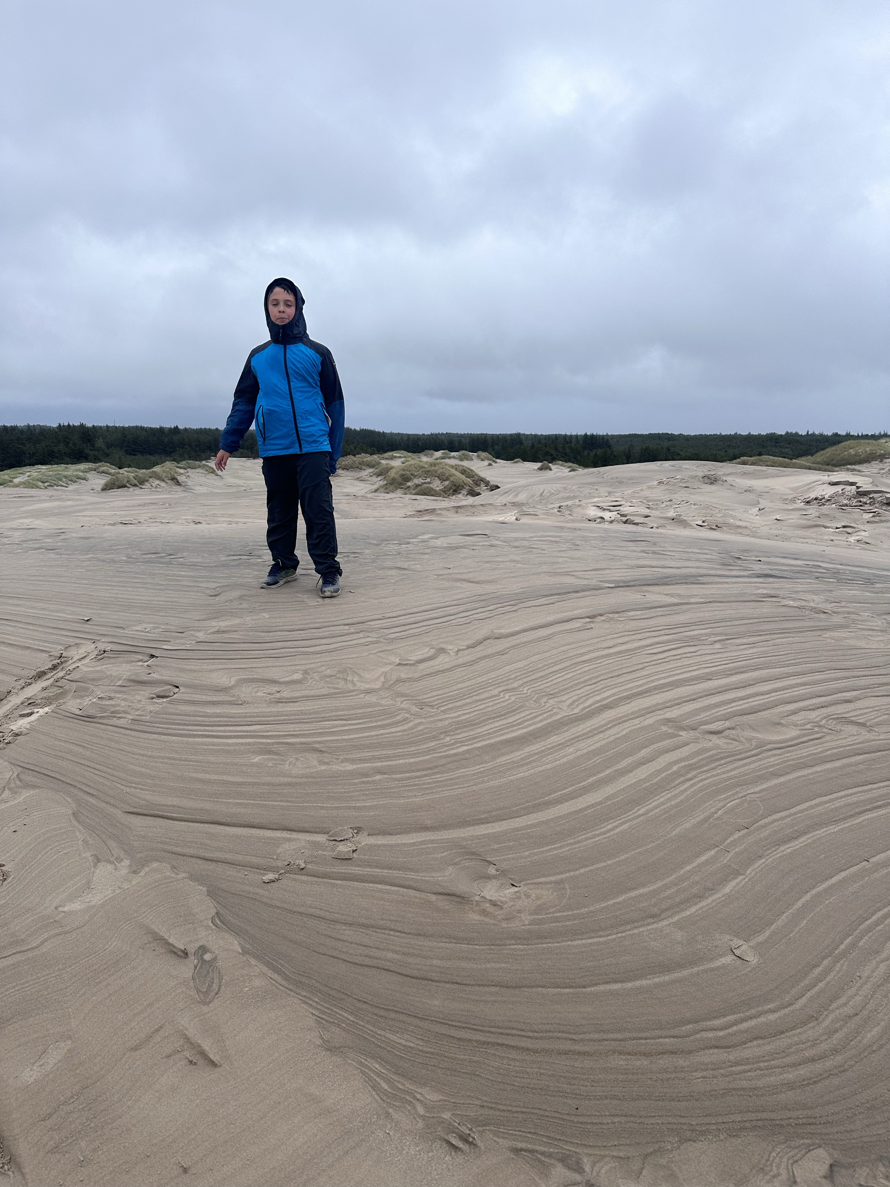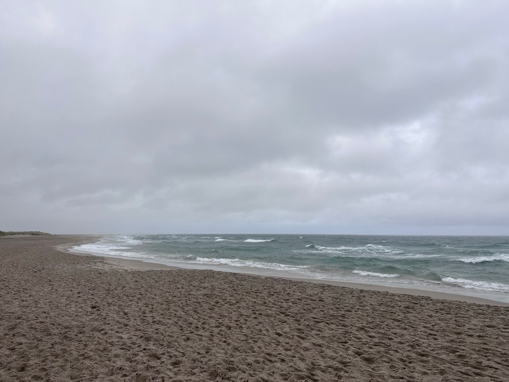 Arriviamo al Rabjerg Mile con un po’ di pioggerellina. Si tratta di un ampio deserto di dune sulla costa est di quella piccola penisola che punta come un dito verso nord, spazzata da forti venti. Qui abbiamo occasione di mettere alla prova il nostro equipaggiamento idrorepellente ed anti vento.