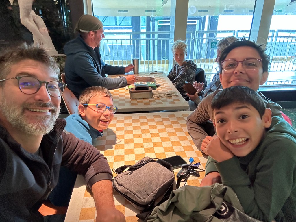 Il traghetto è molto nuovo ed all’interno decisamente pulito, luminoso ed accogliente. Ci piazziamo subito ad un tavolo e da lì non ci smuoveremo per tutta la durata del viaggio.