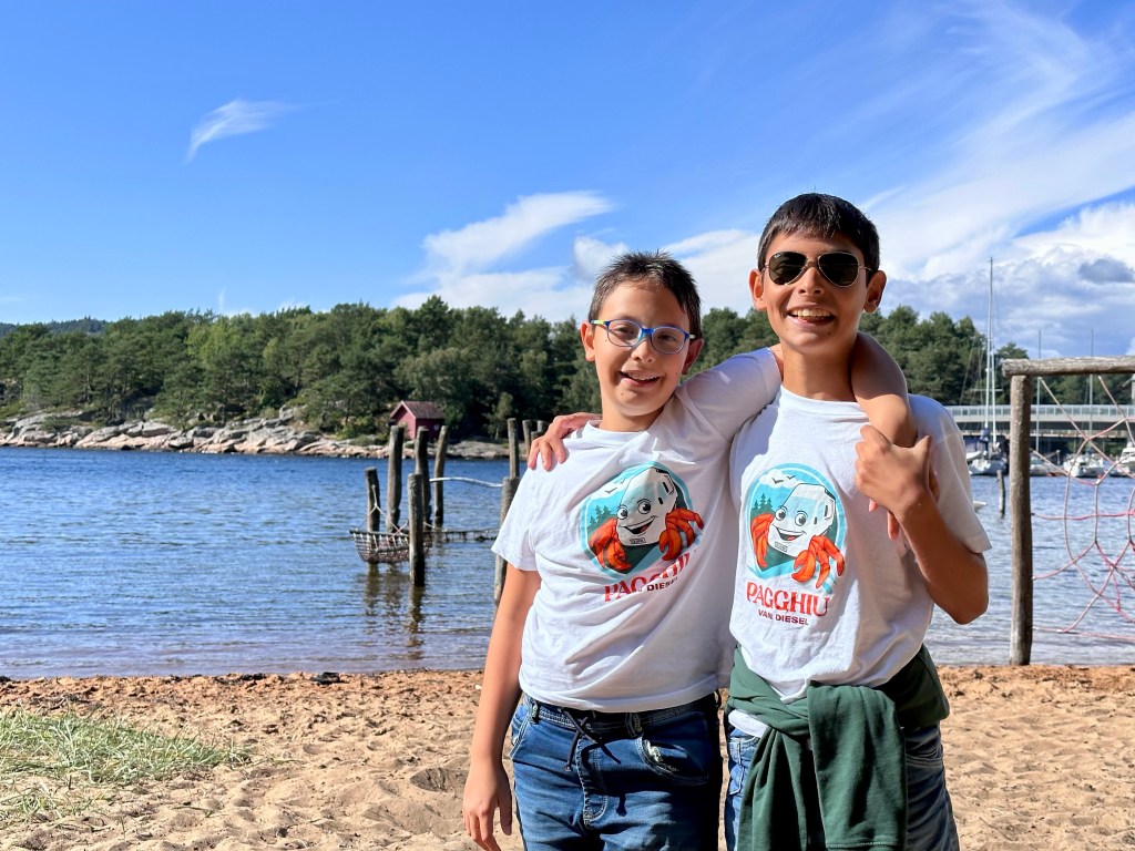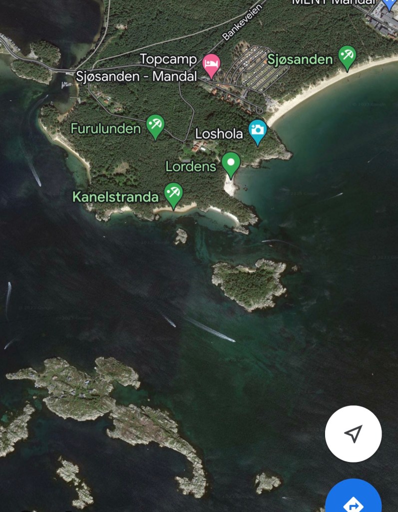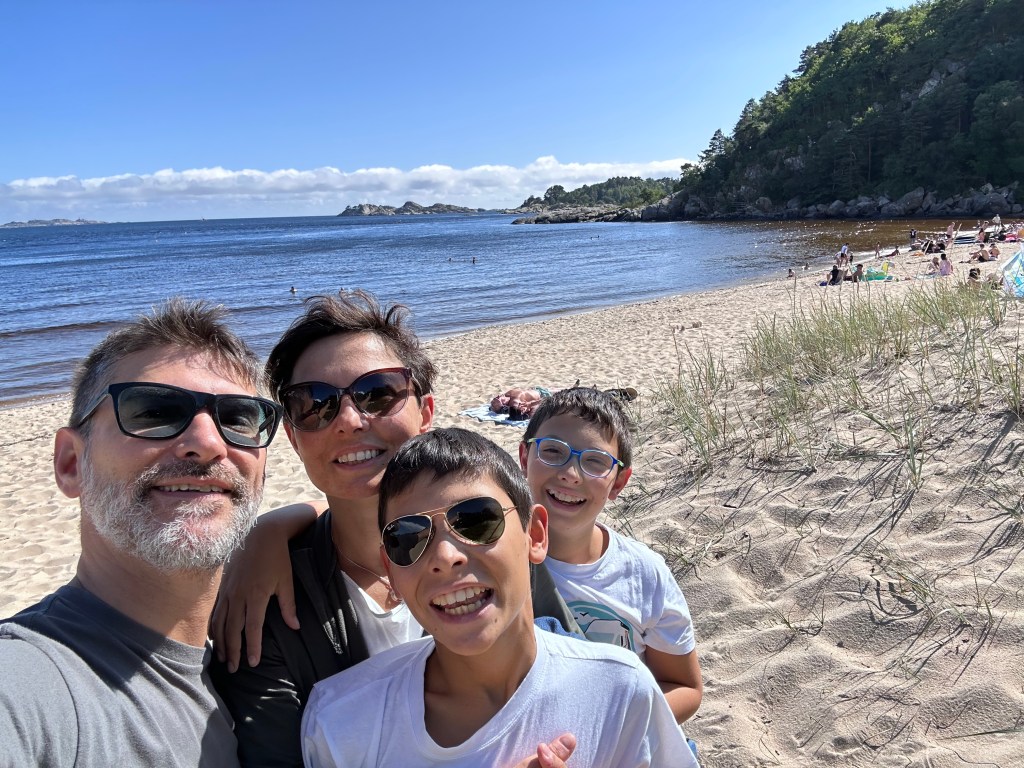 La cosa particolare delle località di mare in Norvegia è che parcheggi in mezzo ad una foresta di conifere, ti prepari mentalmente ad affrontare la salita ad un rifugio con immancabile polenta taragna e poi… Arrivi su una spiaggia con gente in costume, bambini che sguazzano, castelli di sabbia.