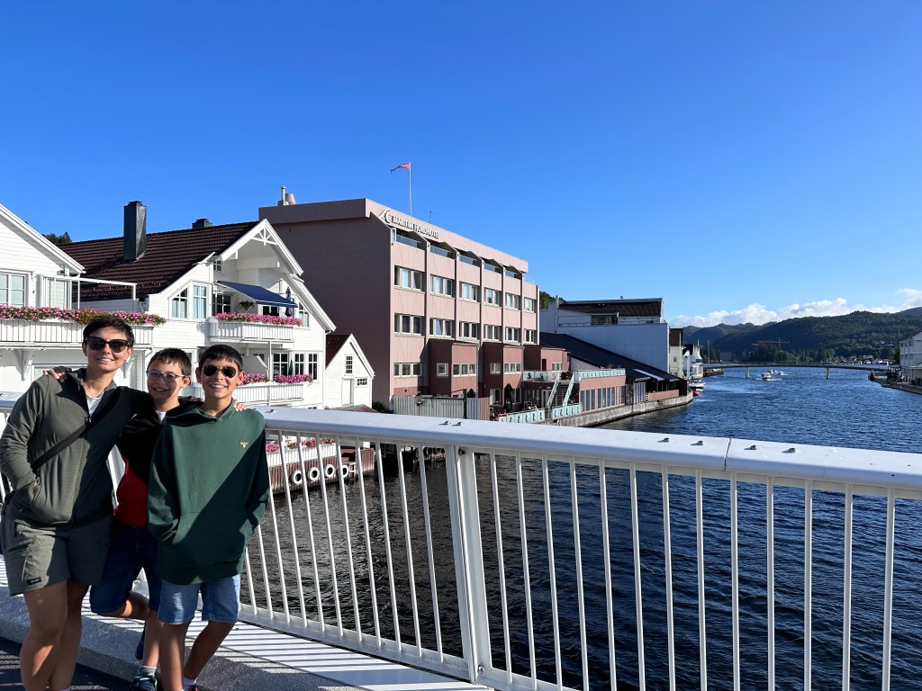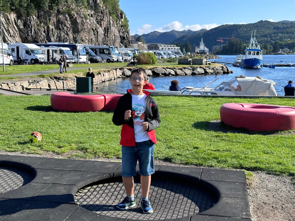 Ci rimettiamo in marcia alla volta di Flekkefjord, dove contiamo di accamparci abbastanza presto e così da riposare un po’. La cittadina, manco a dirlo costruita sulle rive di un fiordo, è davvero carina. A passeggiare nel suo centro storico con le sue casette bianche ci si sente in una zona di Disneyland, ma più pulita!