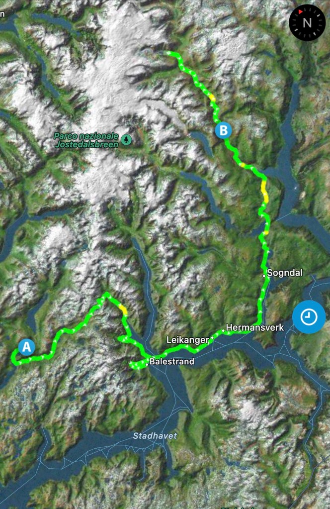 Poi continuano a salire sul Gaularfjellet e intuiamo che Fjellet significa “montagna”. In effetti tutte queste strade qualcosa-fjellet, sono tutti dei passi montani.