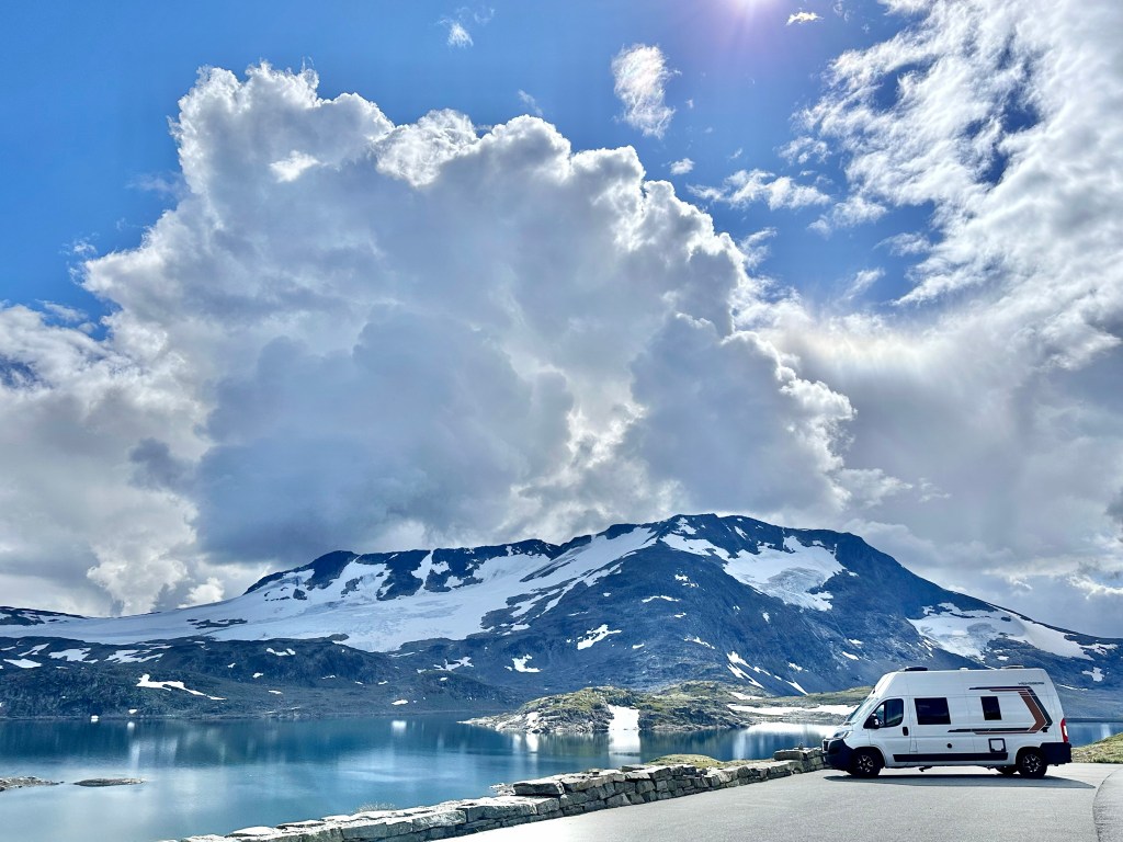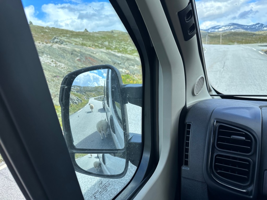 Lungo la strada troviamo le solite pecore che stazionano in mezzo alla carreggiata, una addirittura prova ad assaggiare la ruota posteriore di Pagghiu, mentre raggiungiamo un grande centro visitatori, relativo ad uno degli accessi all’enorme parco nazionale di Jotunheimen.