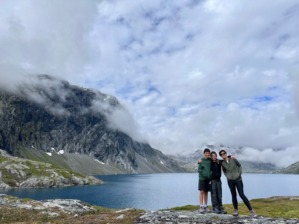 Tornati al livello del mare ci siamo accampati su una piazzola affacciata sull’ennesimo fiordo. Chiara ci prepara degli ottimi Hamburger, con il Brunost, ovvero il brown cheese norvegese.