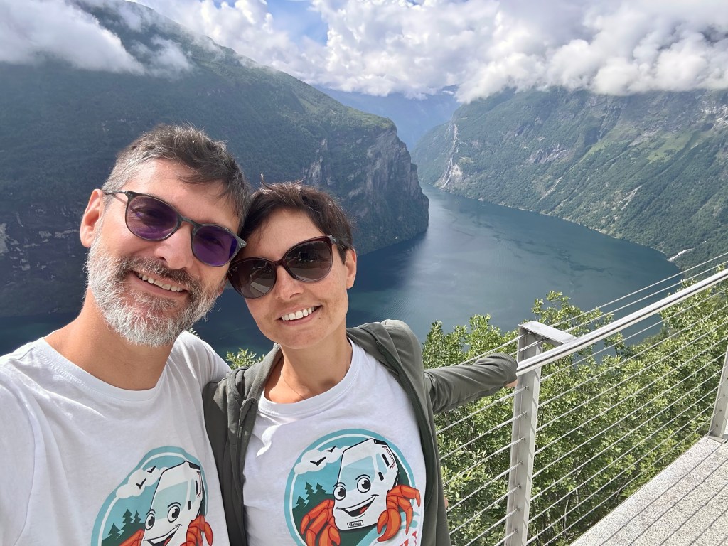 Appena il panorama appare, davanti ai nostri occhi, capiamo come mai ci fosse così tanta gente. Le piazzole dei belvedere sono particolarmente affollate e prese da assalto. Nonostante tutto riusciamo a parcheggiare, fare due passi tra le terrazze ed ammirare la vista su Geiranger.