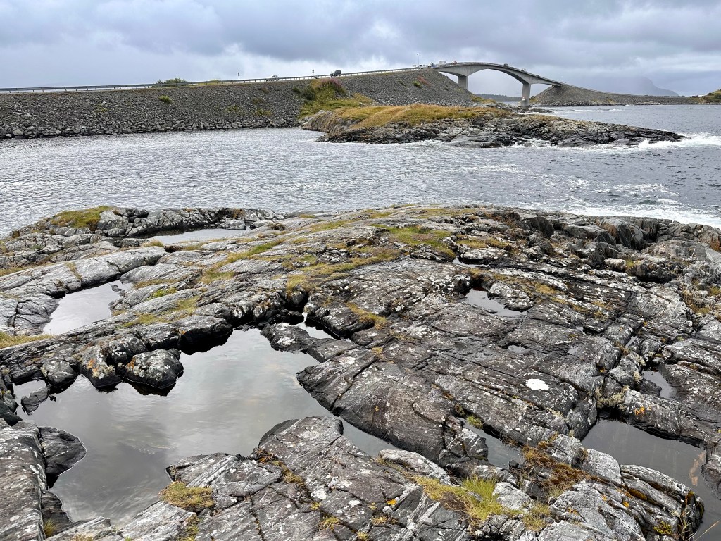 Oggi prendiamo la famosa Atlantic Ocean Road, ovvero la sesta o settima national scenic route del nostro viaggio. Un percorso parte da Bud e si snoda fino a Karvag, attraverso una serie di ponti e passaggi tra isolotti e scogli, con l’oceano da un lato e l’ampia apertura del fiordo dall’altra.