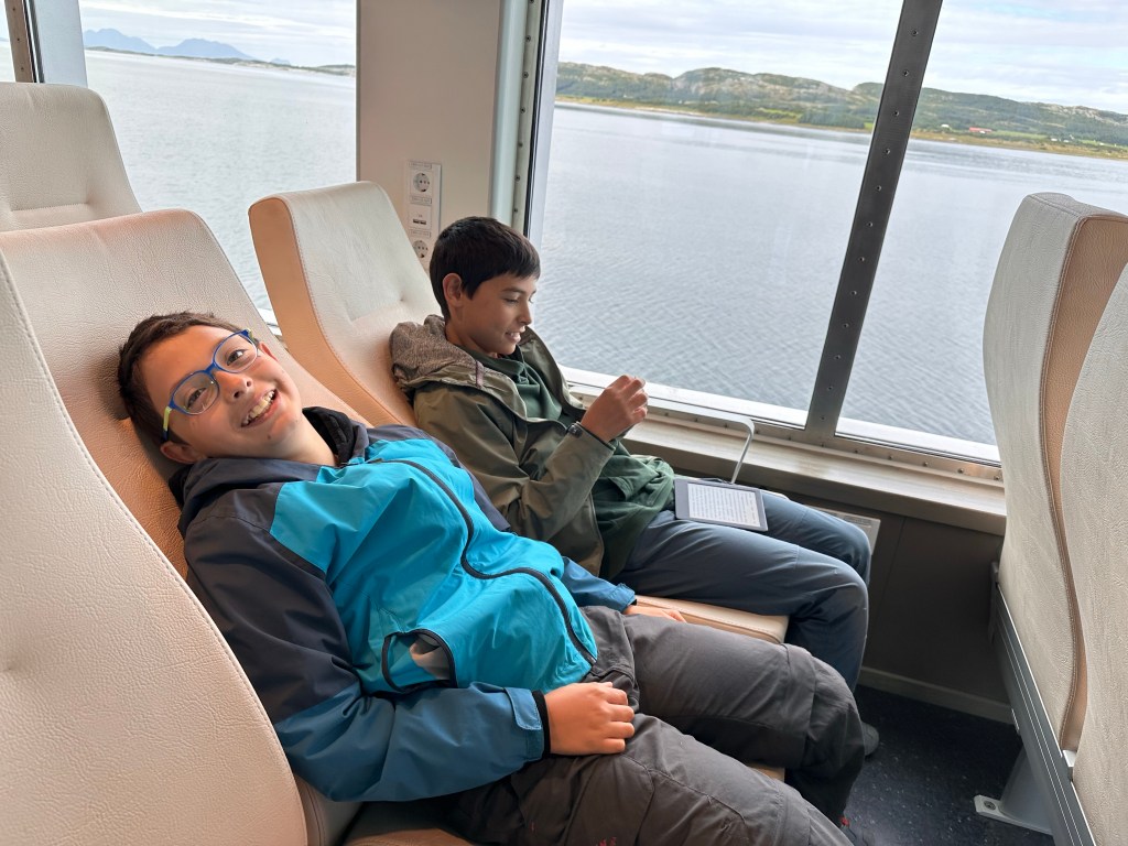 Già avevamo notato che molti di questi ferries sono elettrici, con saloni perfetti, ristoranti e poltroncine extra lusso. Quelli di oggi abbiamo visto che erano stati costruiti nel 2020 e 2022, insomma odoravano ancora di nuovo. Tra l’altro costano anche abbastanza poco, quelli che non sono gratuiti. E grazie alla previdenza di Chiara, che ha arrivato una sorta di convenzione lo paghiamo sempre tariffa scontata anche fino al 50%. Se considerate di fare un viaggio del genere chiedete pure informazioni e consigli.