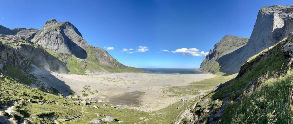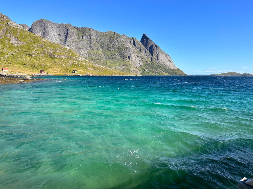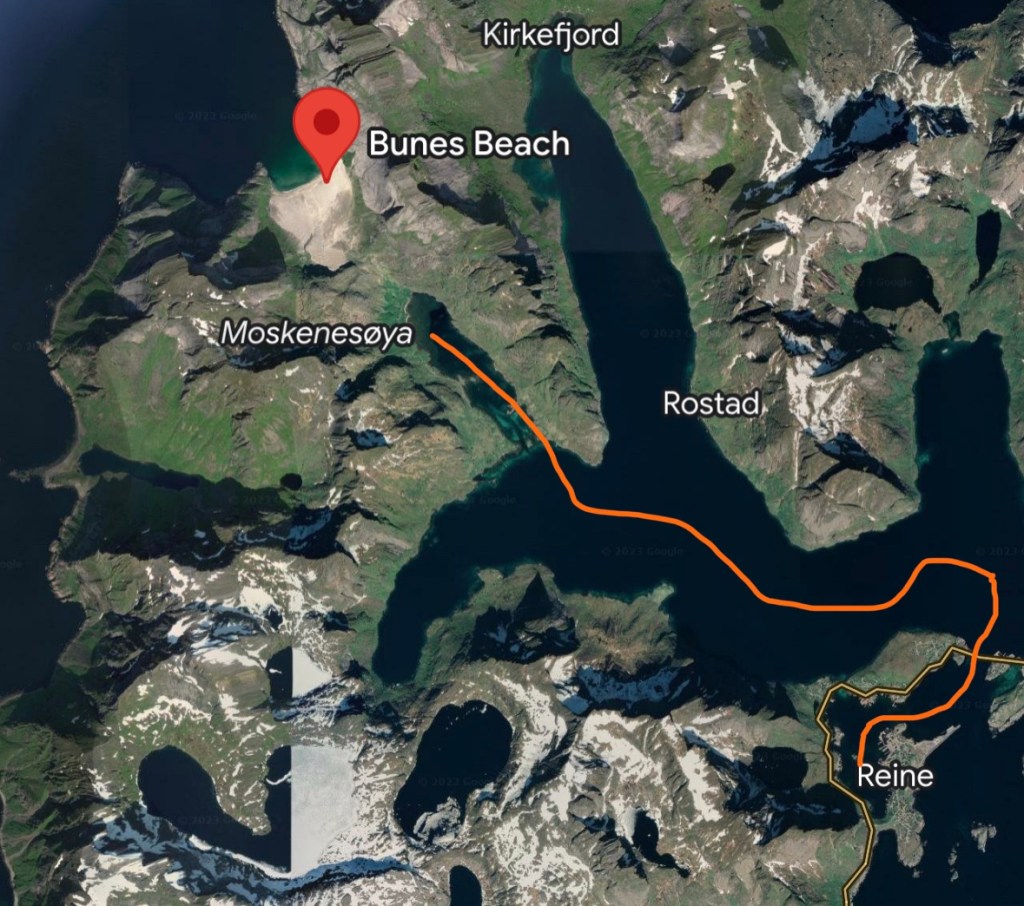 Il programma di oggi è di prendere la barca che, dal molo proprio qui di fronte, ci porterà a Vinstad: minuscolo insediamento di una dozzina di casette colorate. Perché da lì parte il sentiero che conduce a Bunes Beach.