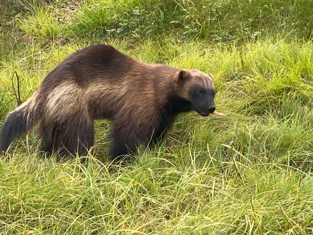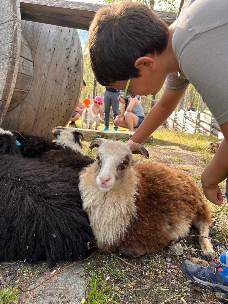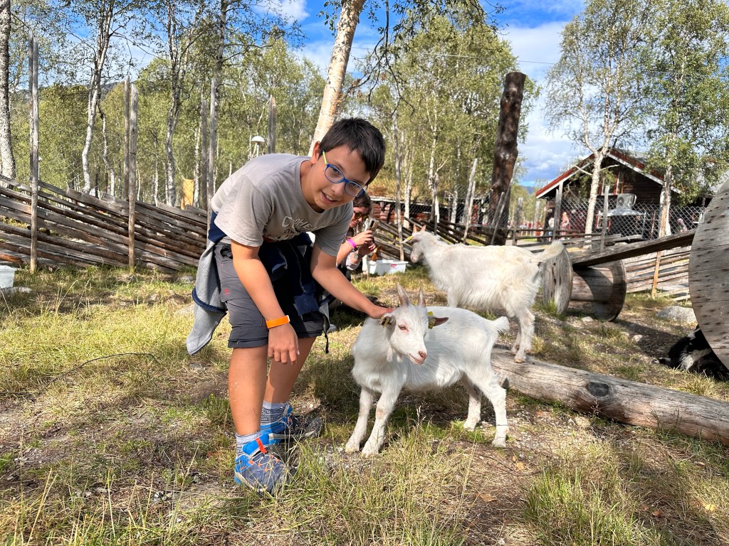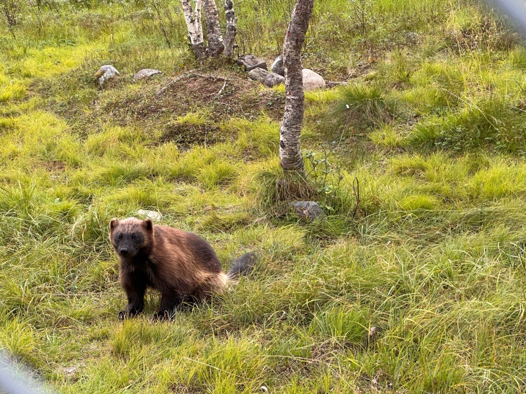 Mangiamo un’insalata di riso con il salmone e poi alle 13 inizia il tour dei predatori con una guida del parco che spiega un po’ di cose e cerca di richiamare gli animali lanciandogli un po’ di ciccia nel recinto. Riusciamo quindi a vedere meglio le volpi, il ghiottone, i lupi e un’altra coppia di orsi giovani molto più grossi degli altri e super simpatici: Salt & Pepper uno bruno e l’altro albino. La loro particolarità è che pur non essendo addestrati, si mettevano volentieri in mostra e salutavano con le loro zampone, rispondendo ai cenni dei visitatori. I ragazzi sono impazziti per la simpatia di questi orsi, che sono stati filmati e rivisti poi svariate volte tra le risate generali.