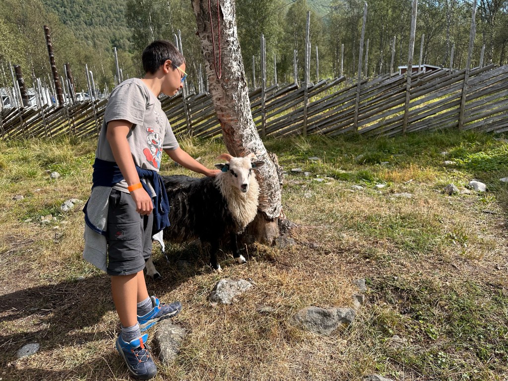 Alle 12 siamo tornati verso l’ingresso perché aprivano il recinto degli animali da cortile per permettere ai bambini di coccolarli. E Dome li ha coccolati tutti!