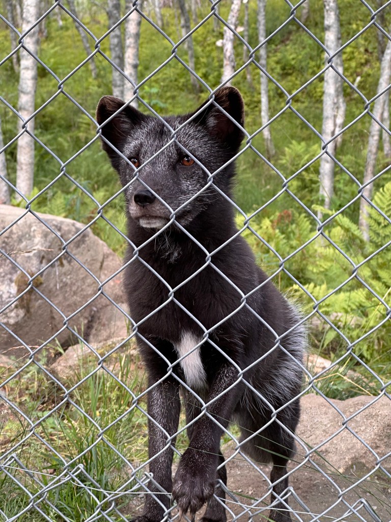 Per primi vediamo un cervo, poi un’alce (entrambi senza palchi) e poi scorgiamo dei teneri esserini neri raggomitolati. Si tratta di volpi artiche della varietà blu, cioè con il pelo scuro per mimetizzarsi più con i boschi e le scogliere che con la neve.